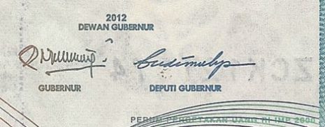 50,000 rupiah (US$5.20), 2012. Like new unlisted 2011-dated note issued 1 August 2011 with Omron rings, but with new date. Courtesy of Sejin Ahn.Read More…