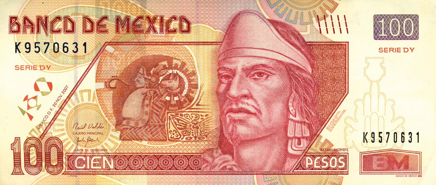 Mexico new date (20.11.2007) 100-peso note (B698g) confirmed