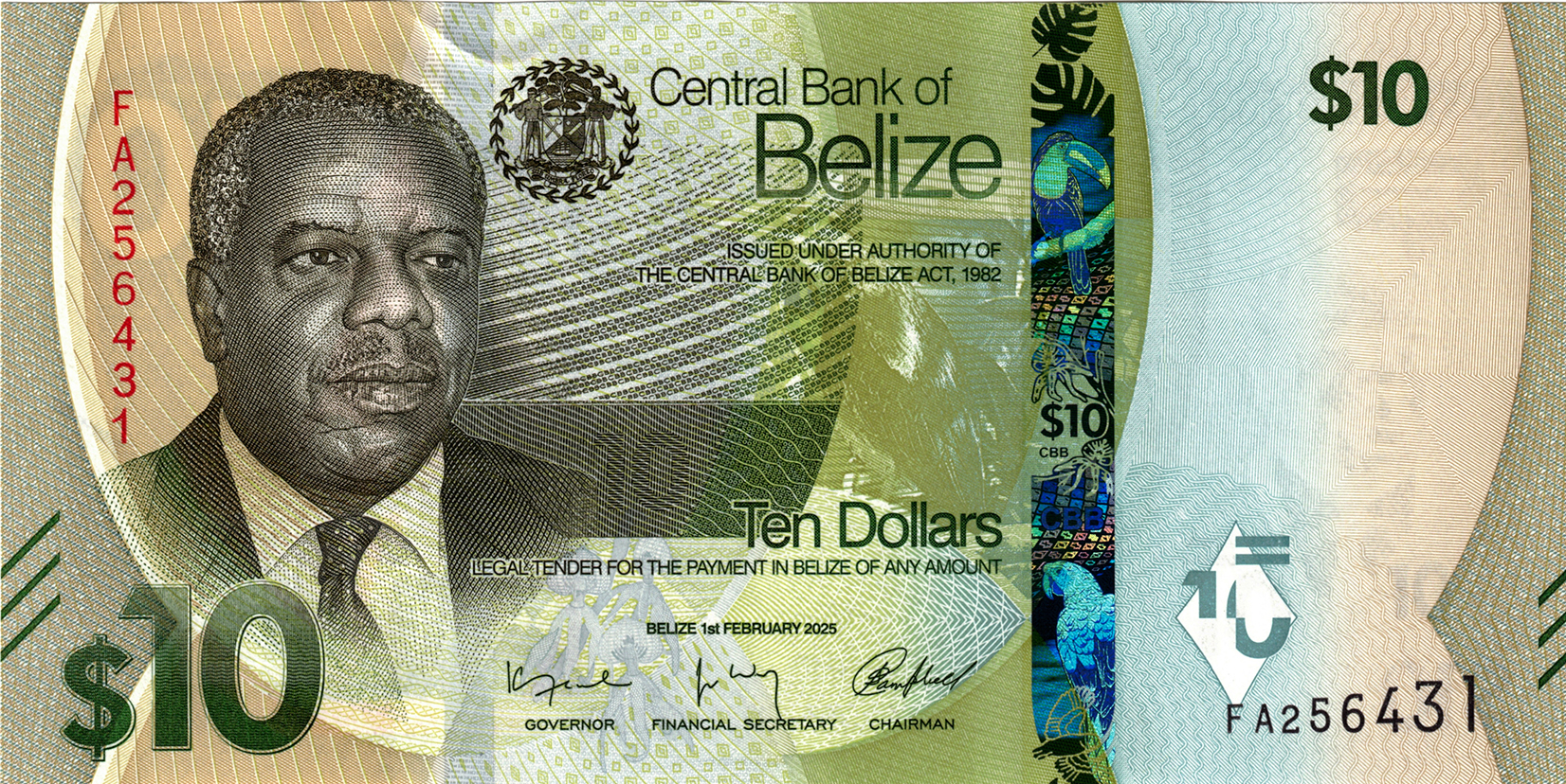 On 23 January 2025, the Central Bank of Belize unveiled this new family of notes which tells unique stories of Belize’s rich heritage and incorporates enhanced security features to combat counterfeiting. The new designs honor recipients of the Order of National Hero, George Cadle Price, the first prime minister of Belize, and Philip Goldson, a member of the Belize House of Representatives for Albert.