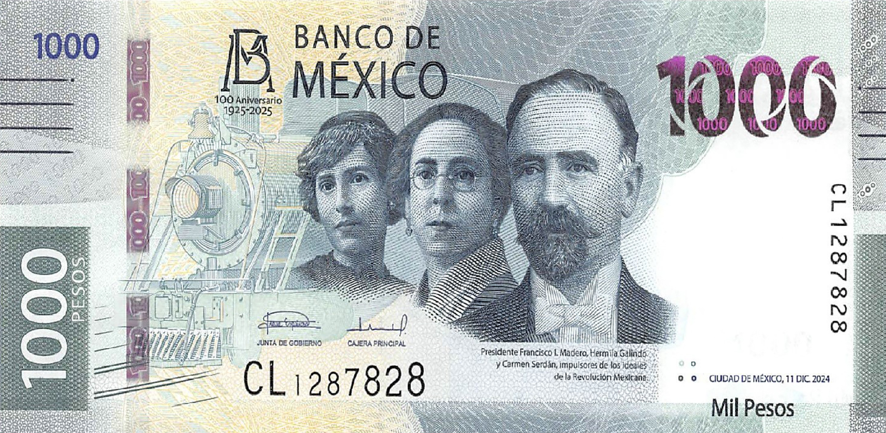 Like B718, but with 100 Aniversario / 1925 – 2025 printed below the bank’s monogram on front.