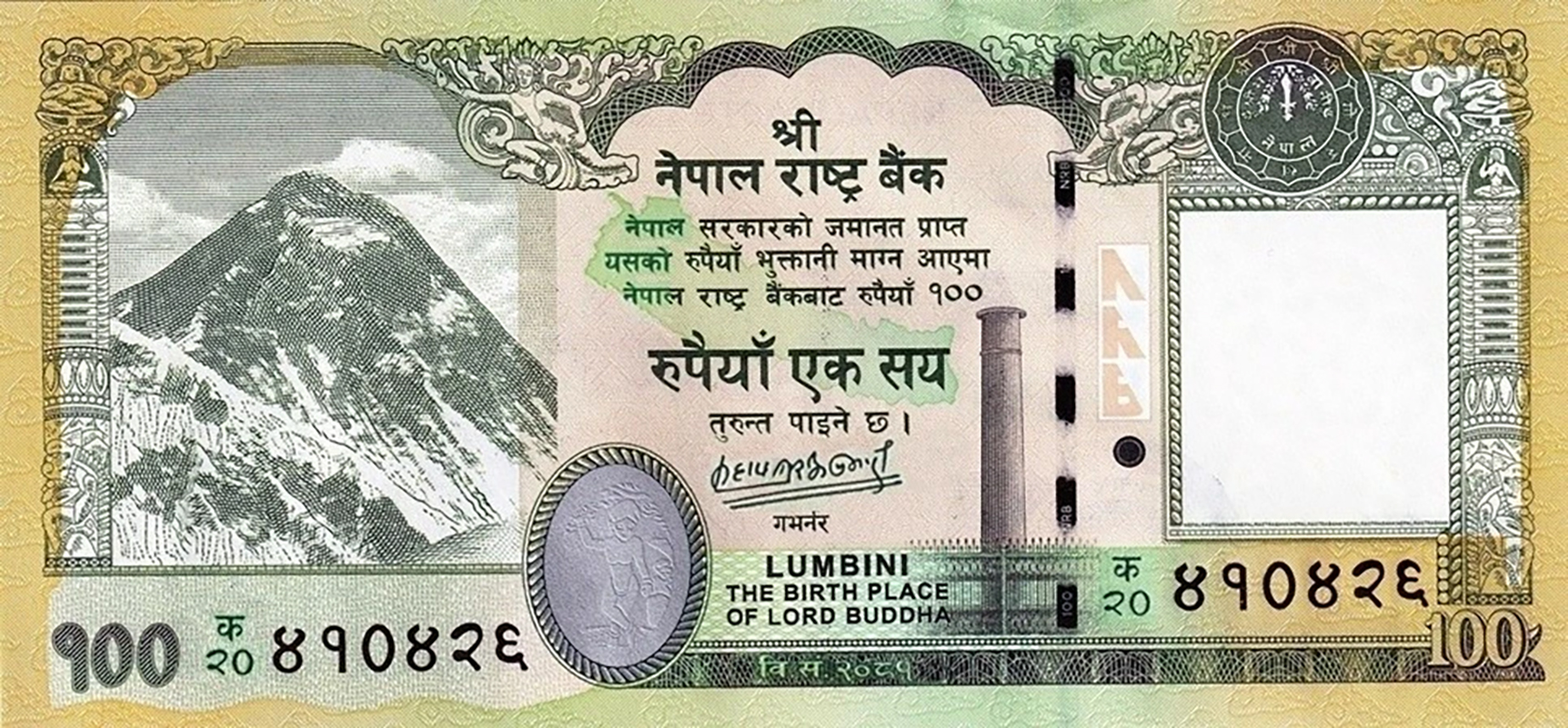 Like B291b, but new signature (Adhikari), new date (2024), and the map of Nepal now includes the disputed territories of Kalapani, Lipulekh, and Limpiyadhura, areas India also claims as its own.