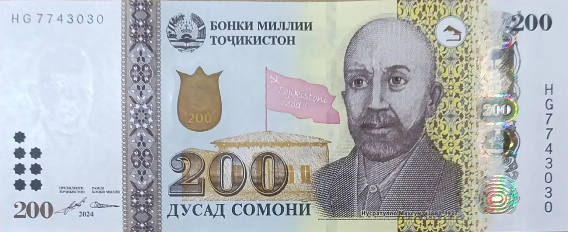 Like B220c, but new signatures (Rahmon/Tolibzoda) and new date (2024). Courtesy of Alex Zlotin. 2026-01-28