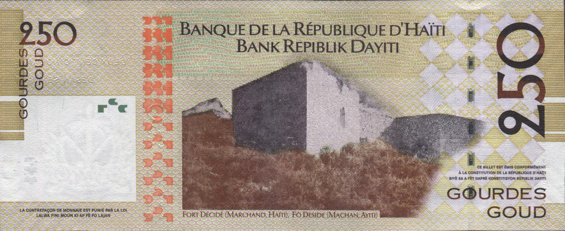 Haiti new date (2014) 250-gourde note (B849f) confirmed