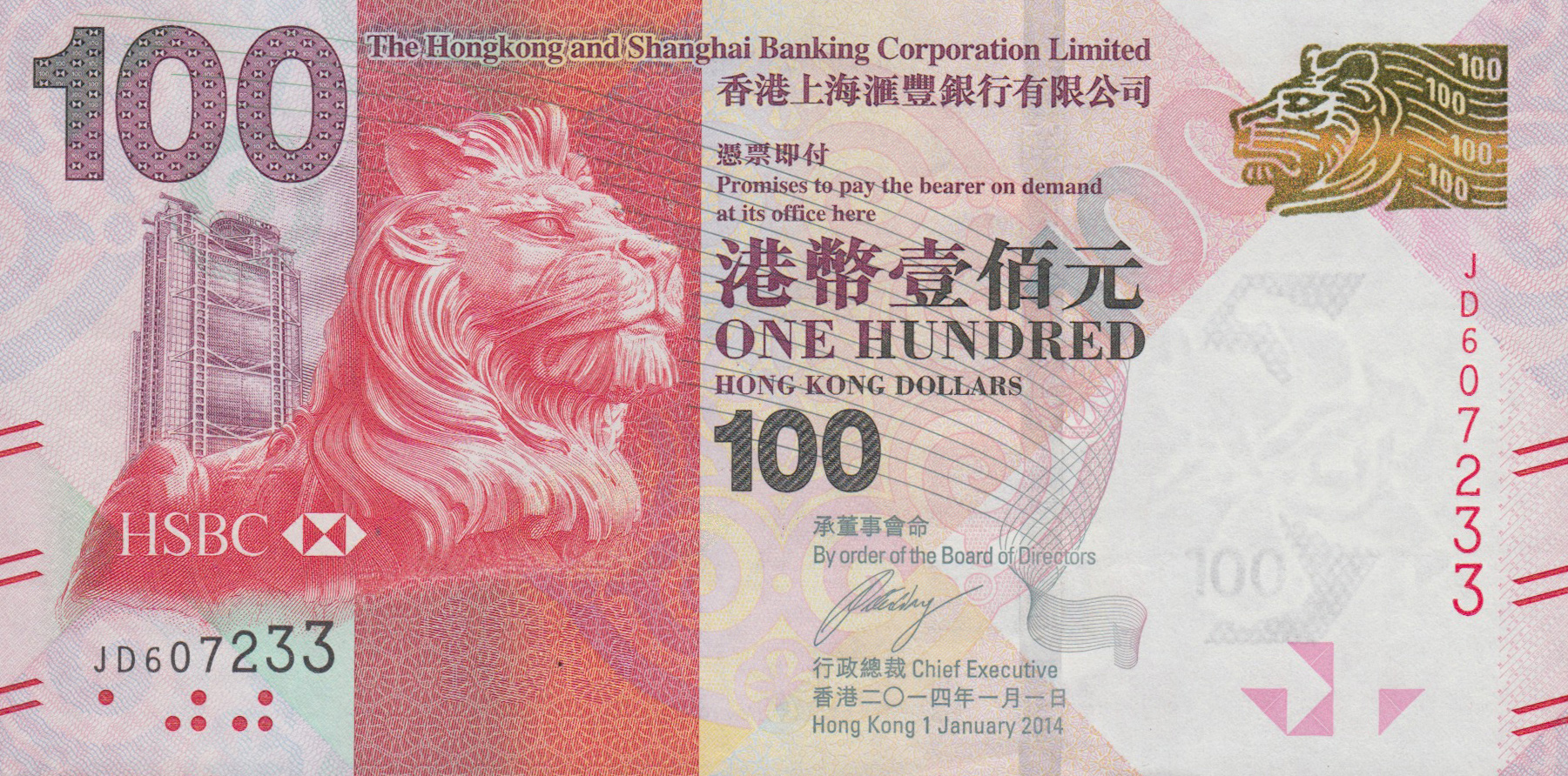 Hong Kong (HSBC) new date (01.01.2014) 100-dollar note (B693d) confirmed